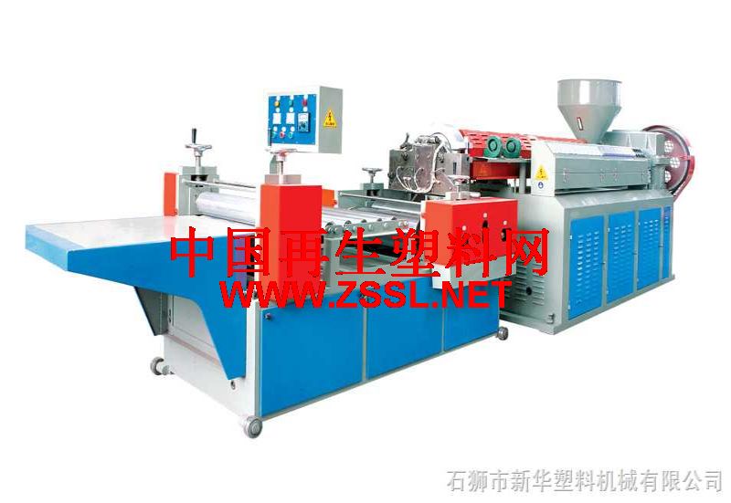 该机组专用于成型塑料板材或片材,其工艺是将已经塑化好的呈粘流态的挤出片材,通过一系列相向旋转着的水平辊筒间隙,使物料承受挤出和延展作用,而成为规定尺寸的片状制品,选择不同的主机可对多种物料进行挤塑(典型的如PVC、PP、PE、TPR等)进行加工,其制品在鞋材、塑胶、建筑、食品、包装、日用品、医药及其它工艺中应用甚广。